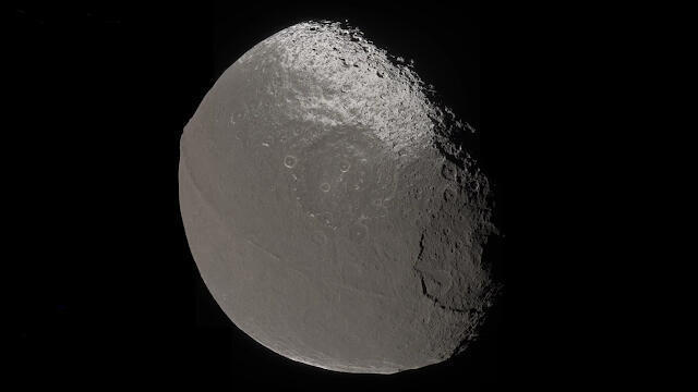 De nem a mi Holdunk az egyetlen furcsaság, itt van a Szaturnusz egyik holdja a Iapetus. Ugye azt szokták mondani, hogy szabályos formák a természetben nem léteznek, kivéve ha ott állnak előtte és meg kellene magyarázni. Ilyenkor a magyarázatok érdekes módon arról szoktak szólni, hogy milyen érdekes a természet, hogy mégiscsak létrehozott szabályos alakzatokat.
