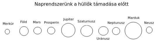 Az ábráról észrevehetjük, hogy az ősi Naprendszerünkben nincs Vénusz, nincs Hold. A Mars és a Prosperin bolygók hasonlítottak a mostani Földhöz. Volt rajtuk víz, oxigén, az északi és déli sarkon jég. Csupán a légkör volt kissé más a két bolygón. Ebben az időben a Föld még lakhatatlan volt, a felszínét teljes mértékben víz borította. A Hold akkor még nem volt, ezért nem volt apály, és dagály. Csak a szél fújt, mert a víz hatására atmoszféra keletkezett, a bolygónk hőmérséklete pedig jóval melegebb volt a mostaninál, mivel a keringés során közelebb került a Naphoz.
